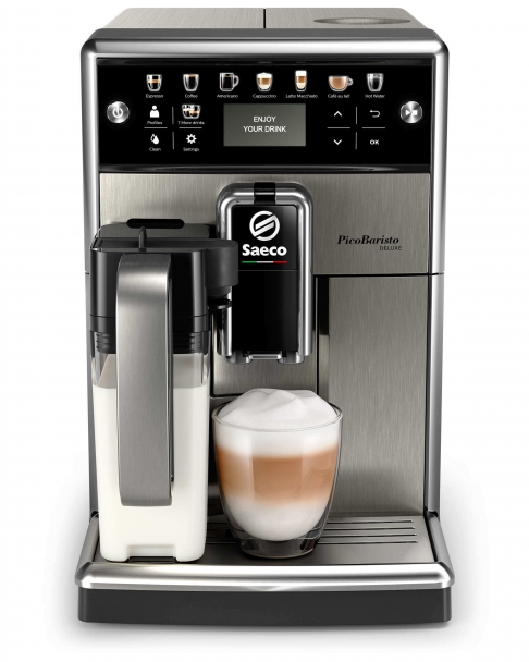 Zniewalający zapach i prawdziwy smak wydobywający się z każdego łyka doskonale przygotowanej kawy, to dla wielu z nas synonim perfekcyjnego poranka lub idealnego popołudnia, spędzonego w gronie najbliższych. Wraz z automatycznym ekspresem Saeco PicoBaristo Deluxe SM5573/10 przygotowanie jednego z 13 dostępnych napojów stanie się prawdziwą przyjemnością. Wyposażony w najwyższej klasy opatentowany filtr AquaClean zapewni krystalicznie czystą wodę niezbędną do skomponowania najlepszej jakości kawę. Dzięki funkcji CaffeDuo przyrządzisz dwa napoje jednocześnie, a innowacyjny system spieniania mleka (LattePerfetto) zwieńczy twoją ulubioną mleczną kawę aksamitną, gęstą pianą.